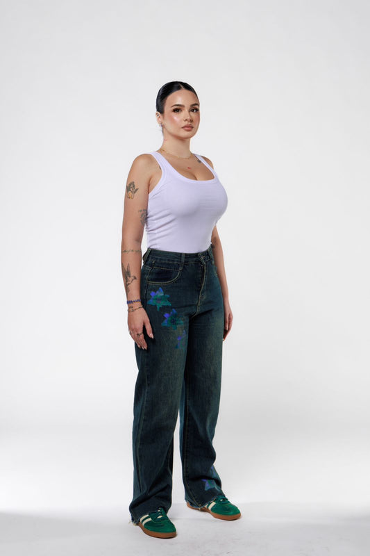 Blue Flowers Jeans